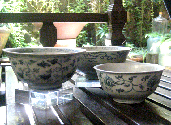 3 Blue & While Bowls from early Ming Dynasty export wares excavated in the Philippines